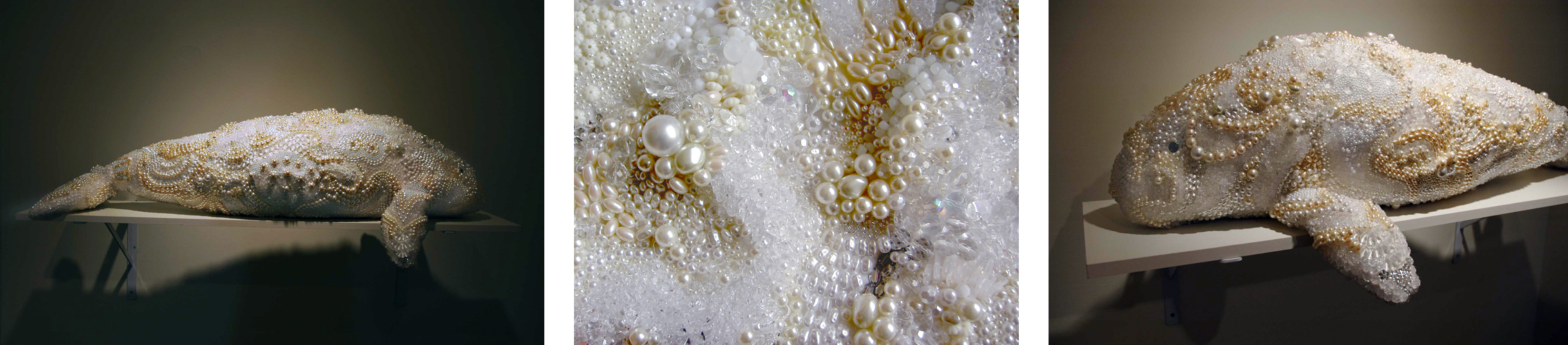 Plastic and glass beads, acrylic stuffing, canvas, internal motor.