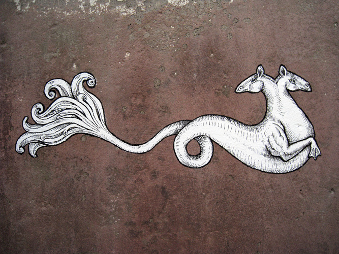 Gesso and ink on inner wall of building. Bildudalur, Iceland. 2010