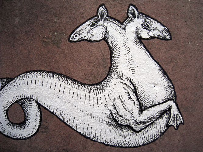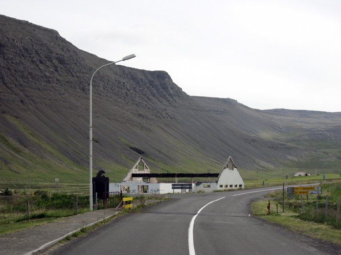 This monster was painted on the inside wall of a neglected building on an intersection just as you enter Bildudalur. While I was there in June, arctic terns were nesting on the beach nearby. I was chielded from their vicious and elegant swooping attacks by the the building's exposed metal support beams running across the open roof.