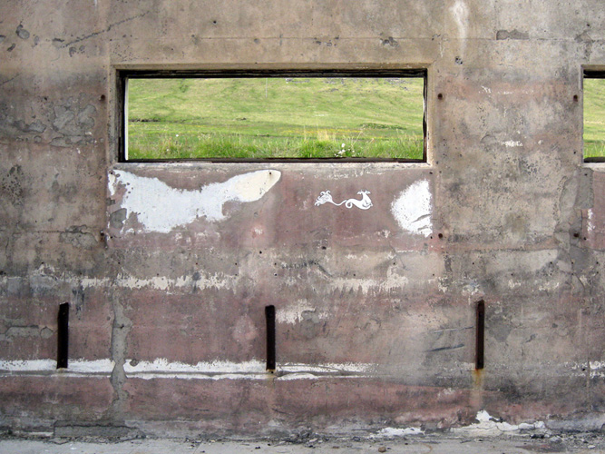 Gesso and ink on inner wall of building. Bildudalur, Iceland. 2010