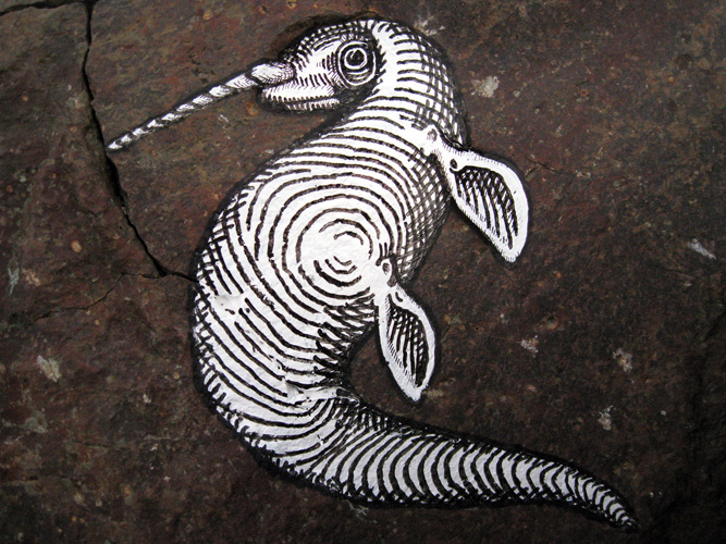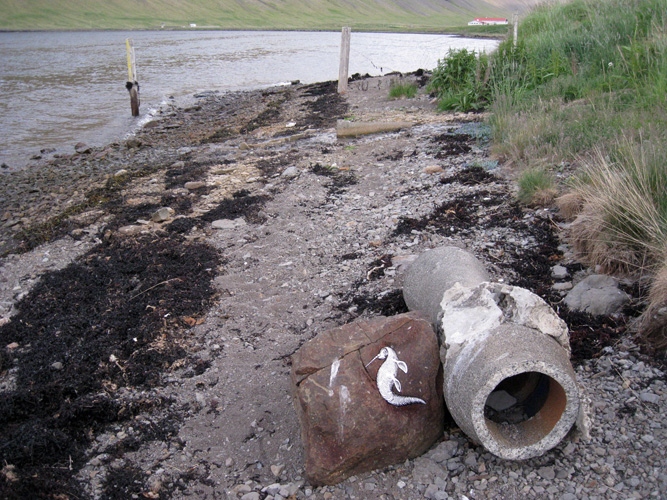 Gesso and ink on a rock. Bildudalur, Iceland. 2010