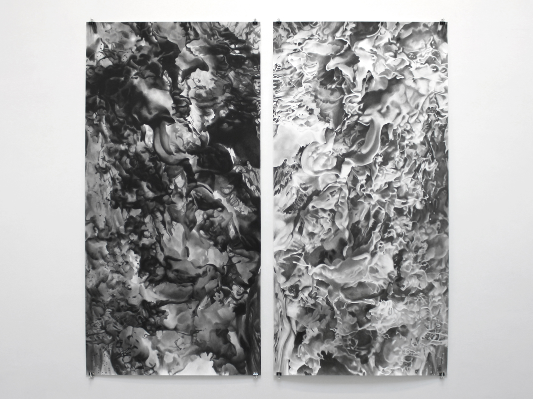 Charcoal on paper, 2 sheets 88 x 44 inches, 2013